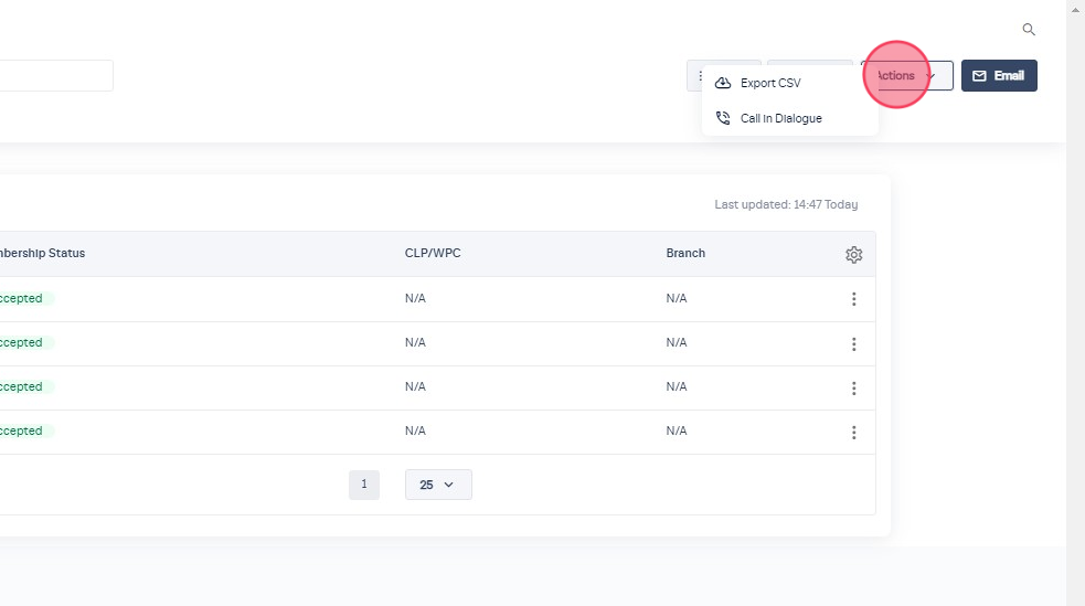 2. With your chosen audience on screen, click 'Actions' and 'Call in Dialogue'.
