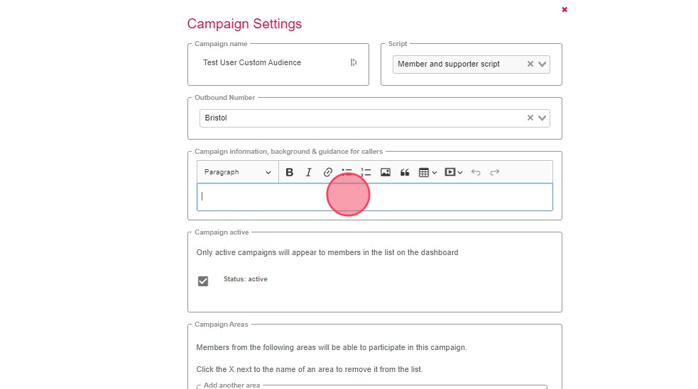 Your campaign is saved and ready to be used for calling. Please see How to call Members and Supporters for guidance on using your new calling campaign.