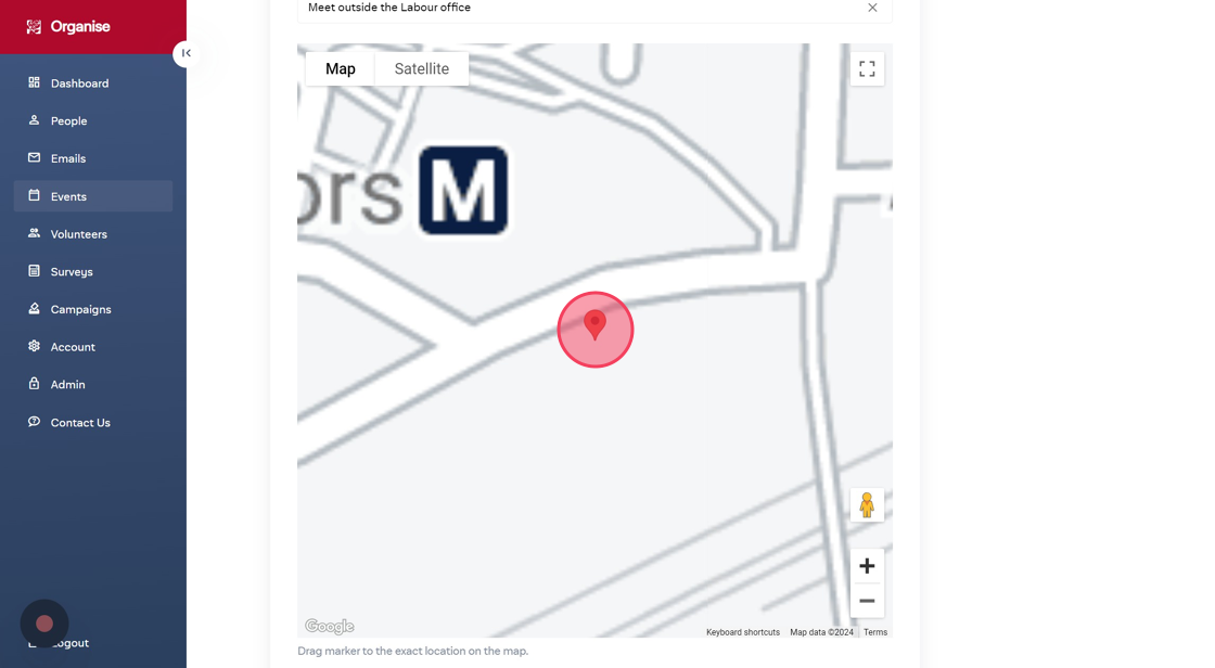 12. You can also zoom into the map and drag and drop the map pin to a specific location. If the constituency has not populated automatically, dragging and dropping the map pin a small amount can resolve this.