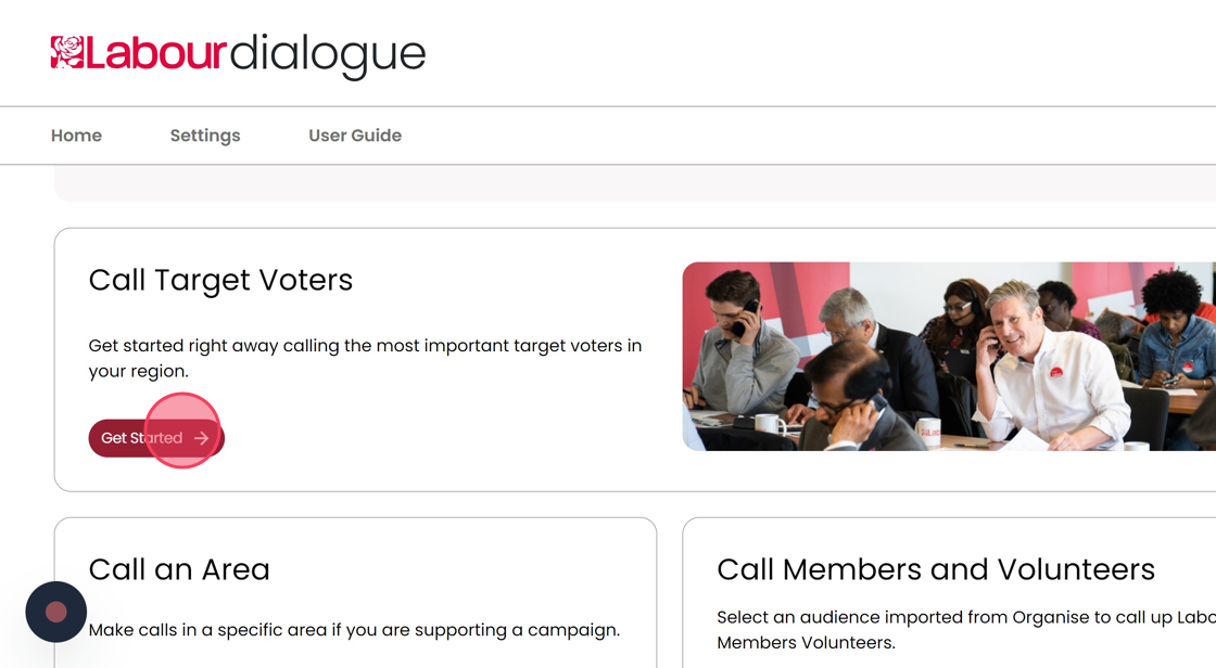4. In the 'Call Target Voters' box, click 'Get Started'.