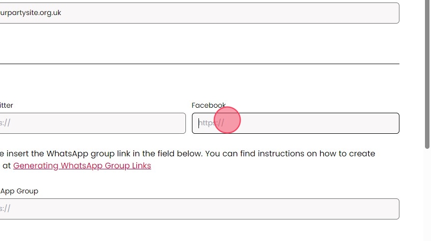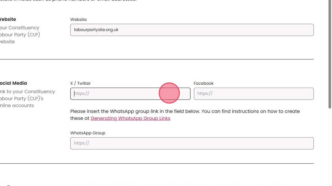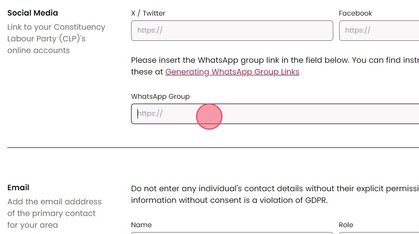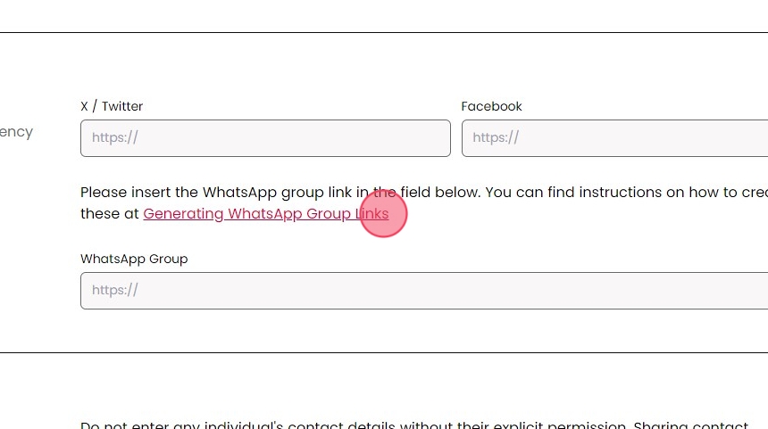 Click the "WhatsApp Group" field and enter the link to the WhatsApp Group for your CLP/Branch.
