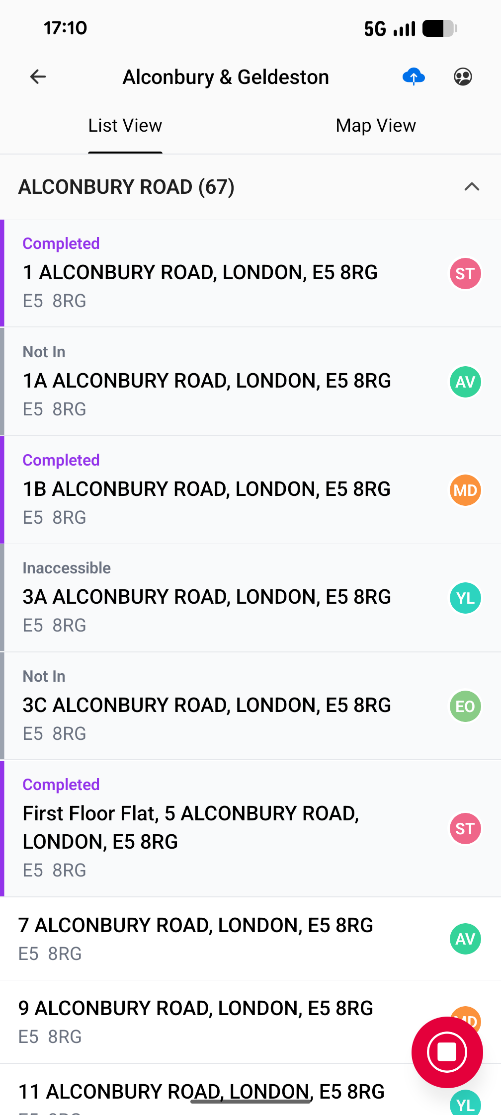 You will be returned to the road group automatically where you can see which properties have been completed.