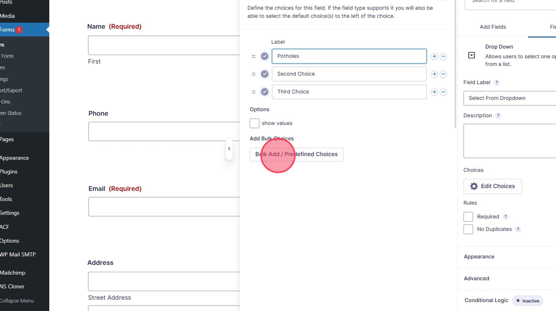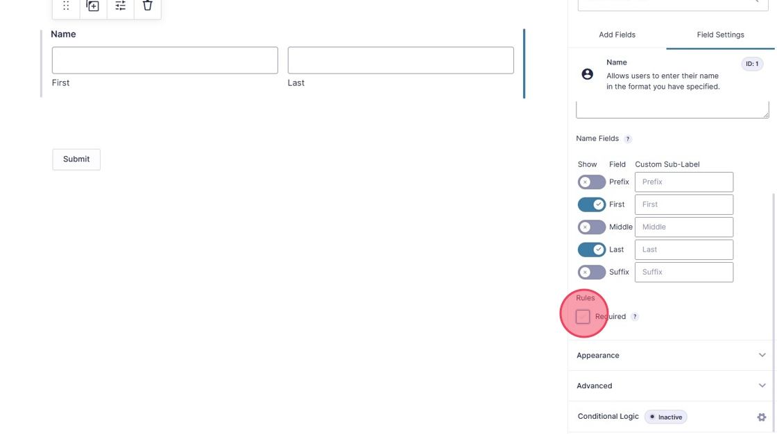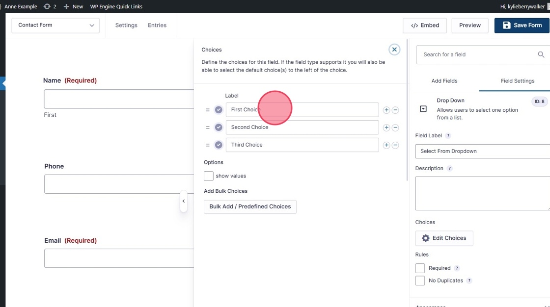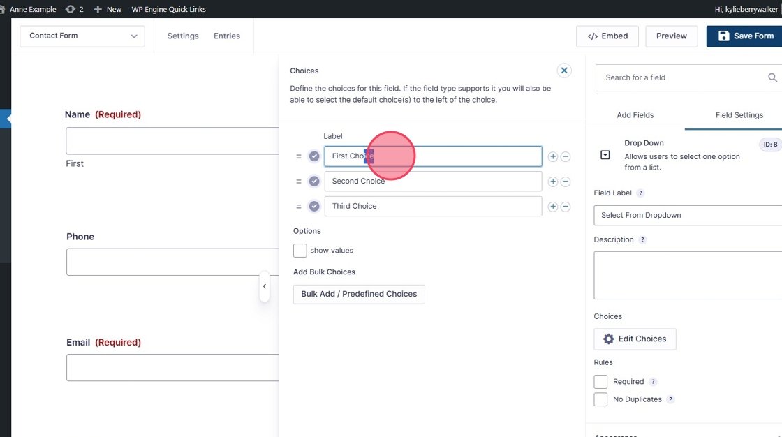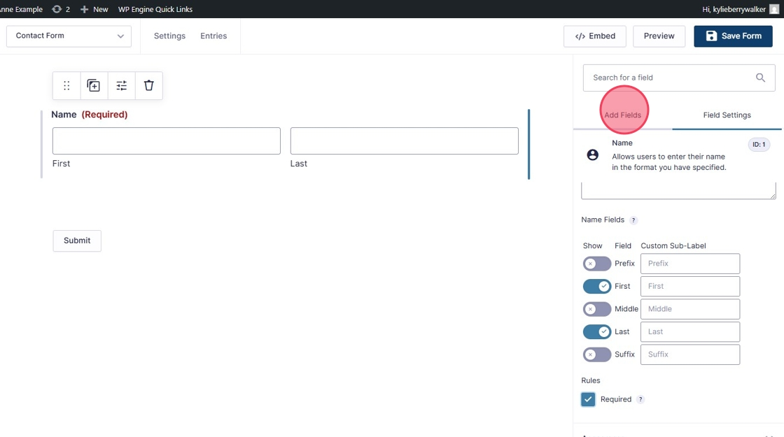 Here you can make changes to the fields, change the name, add and remove options and add rules such as "Required"