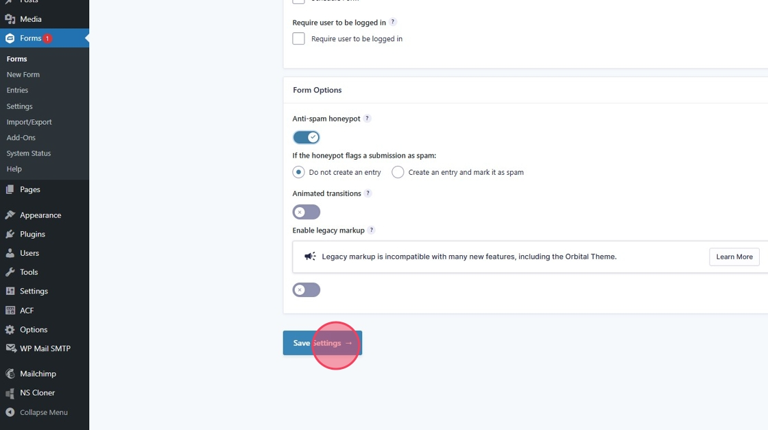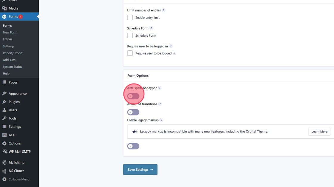 24. To turn on the anti spam filter toggle on the "Anti Spam Honeypot" switch.