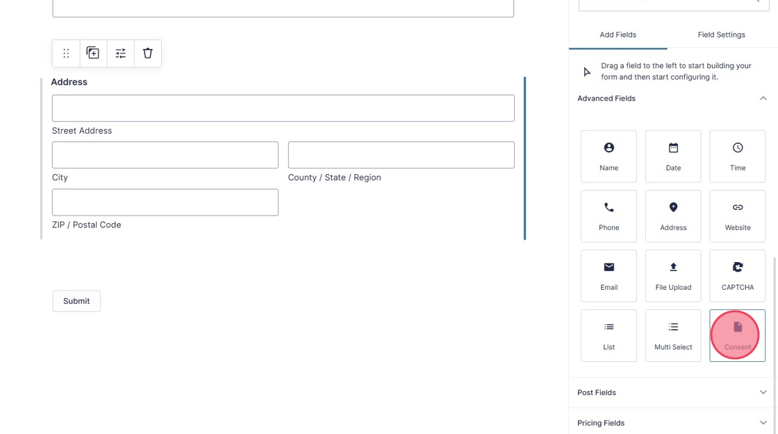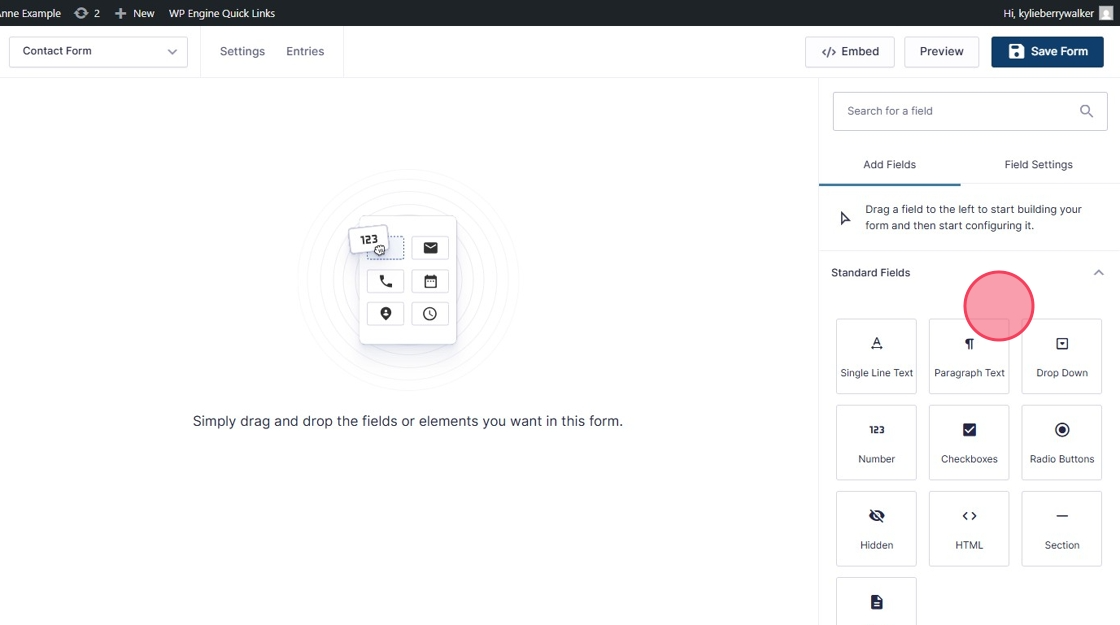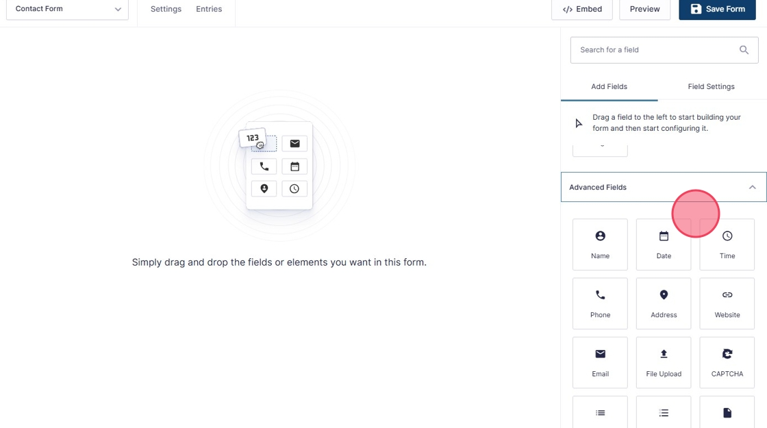 7. There are many fields you can use in your form. They are shown within the standard and advanced field selectors.