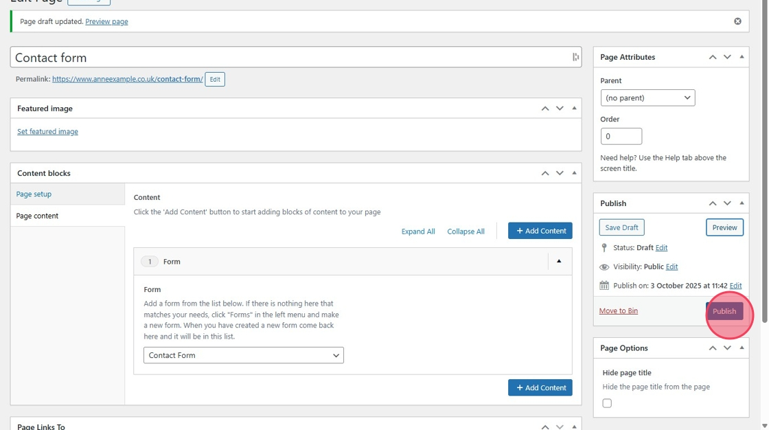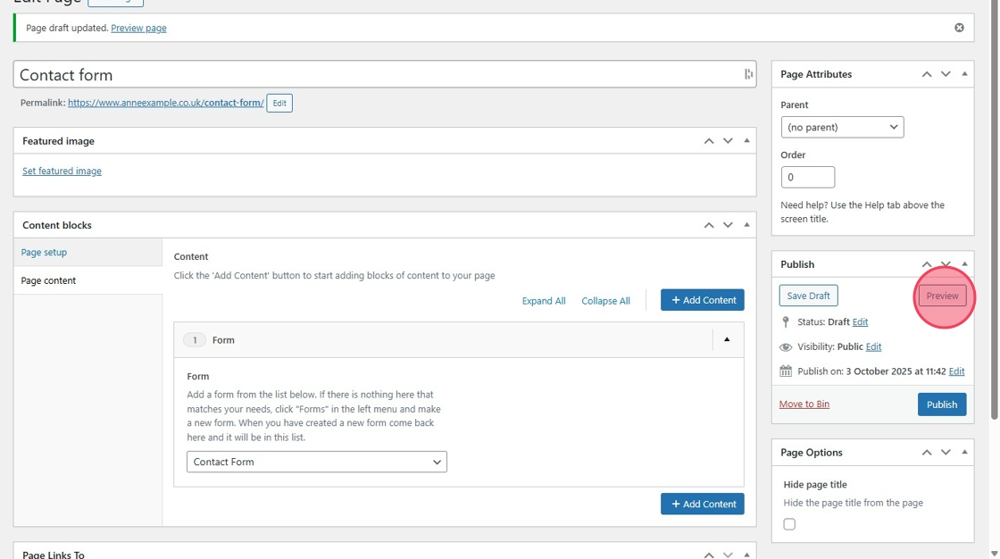 8. You can then Preview your form by clicking "Preview (opens in a new tab)," this does not publish it to the site.