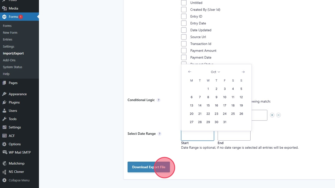 41. Once your have made your selections click "Download Export File". The CSV will then download.