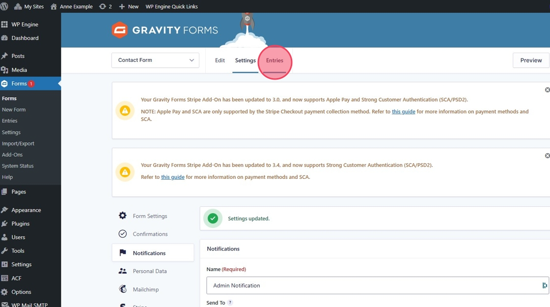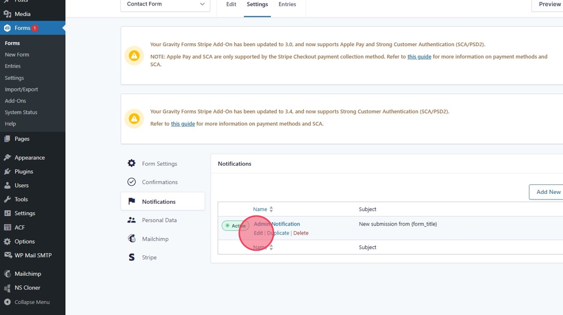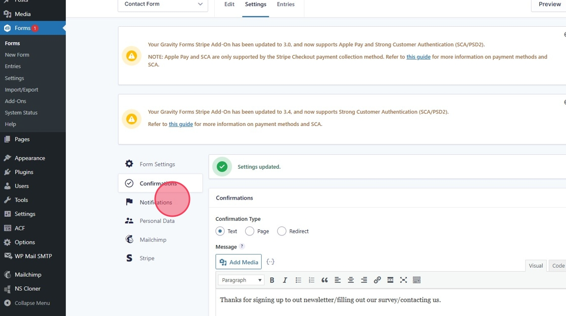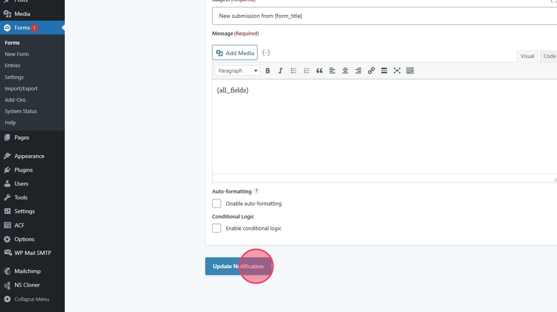 32. Make any necessary changes to admin notification and click "Update Notification"
