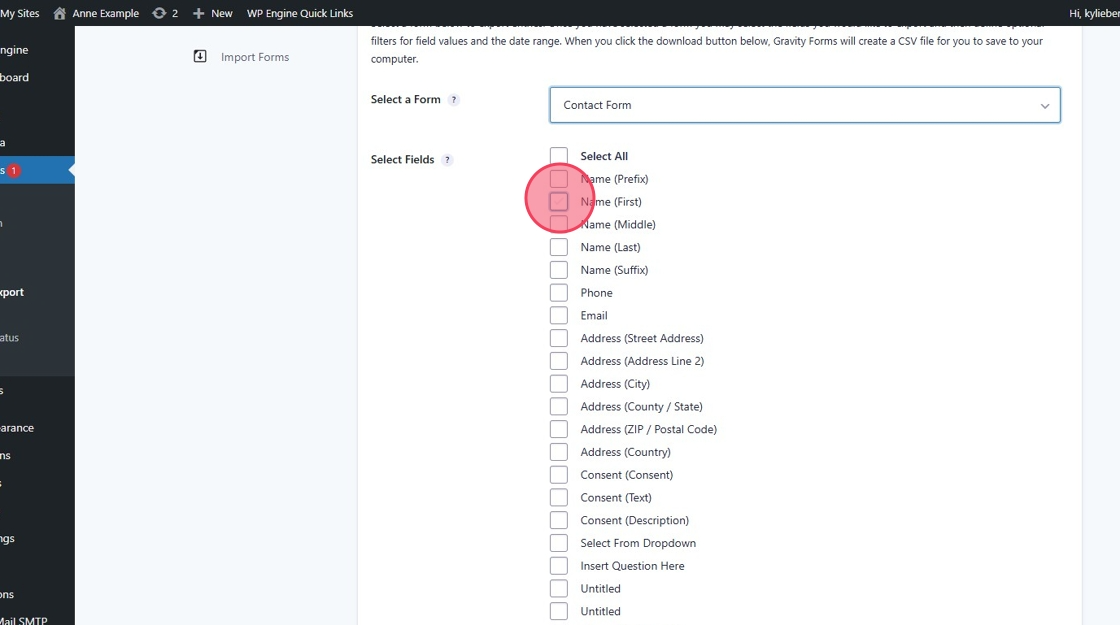 37. Select the form you want to export and select all of the fields you wish to incude in the export.