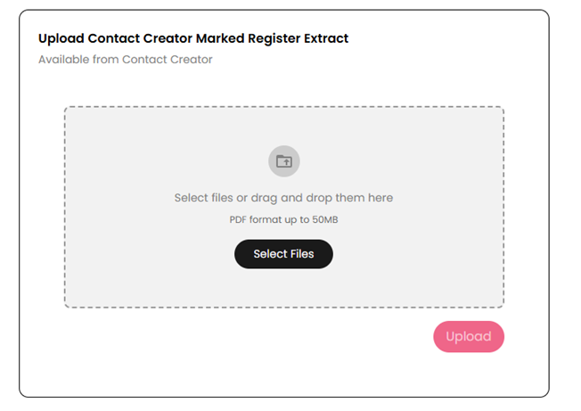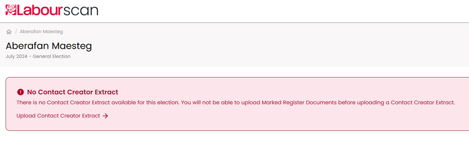 4. Click ‘Upload Contact Creator Extract’ and select the MREXTRACT (Contact Creator csv output file) for the area you are working on.