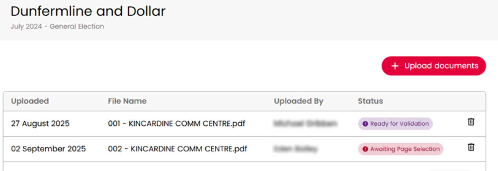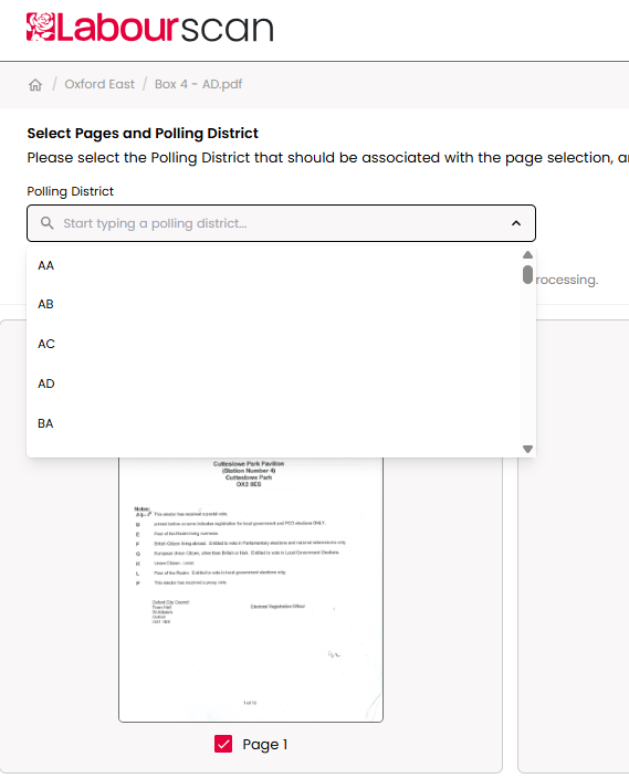 8. If you have one PDF which contains data for two Polling Districts, upload this PDF twice - one PDF per Polling District