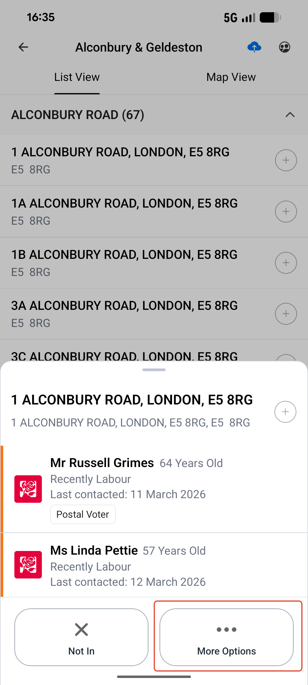 To enter reasons for a whole household, use the 'more options' button in the household preview: